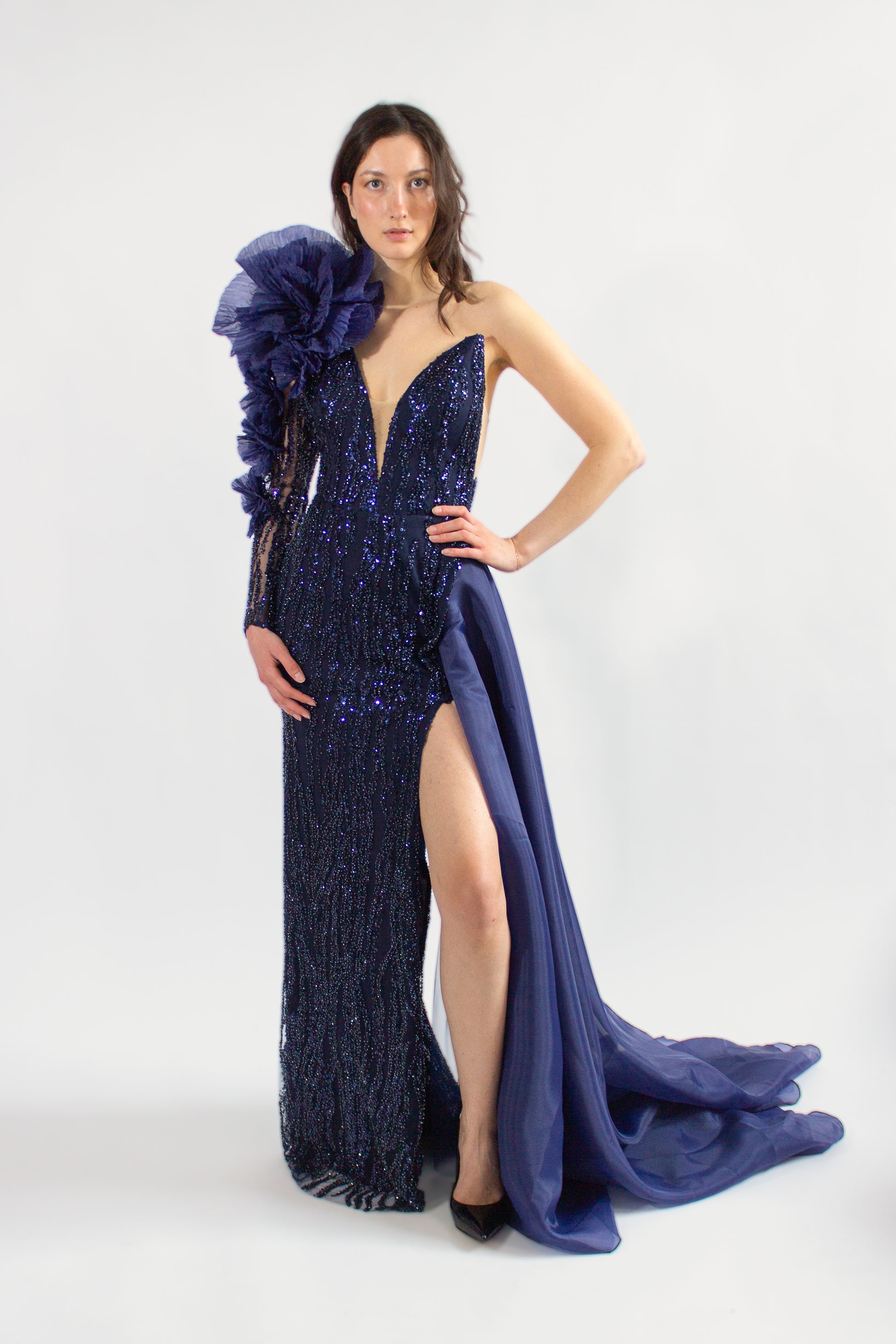 Présentation de l'exquise DEANA GOWN, une robe de soirée pas comme les autres de notre collection exclusive. Avec une seule pièce disponible, cette robe garantit que votre style est vraiment unique et inégalé. Confectionnée avec une attention aux détails et à l'élégance, cette superbe robe est un incontournable dans un bleu marine luxueux.
