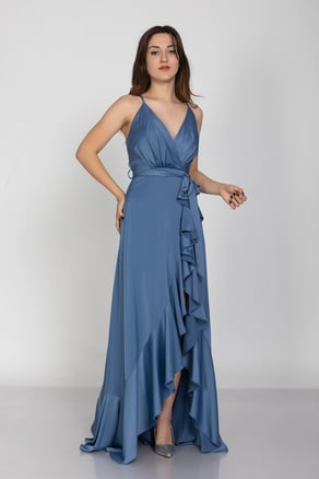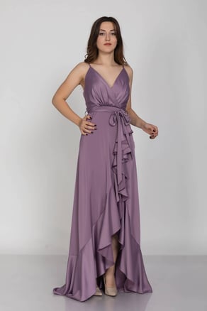 The LILY dress brings effortless elegance to every special moment. Designed with a flattering wrap-style bodice and soft V-neckline, this gown highlights the waist with an adjustable tie while creating a beautifully contoured silhouette. The cascading ruffle skirt adds movement and drama, flowing gracefully with every step.