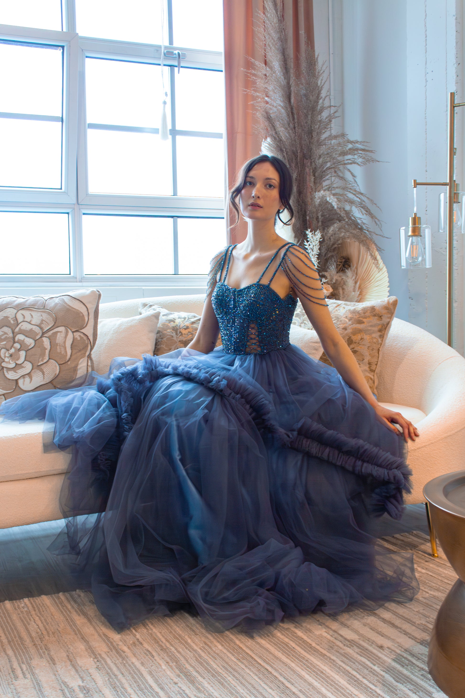 sa pièce à couper le souffle est conçue pour vous faire sentir comme un roi lors de toute occasion spéciale. Confectionnée avec un tissu luxueux et un corsage complexe perlé à la main, cette robe respire une élégance intemporelle.