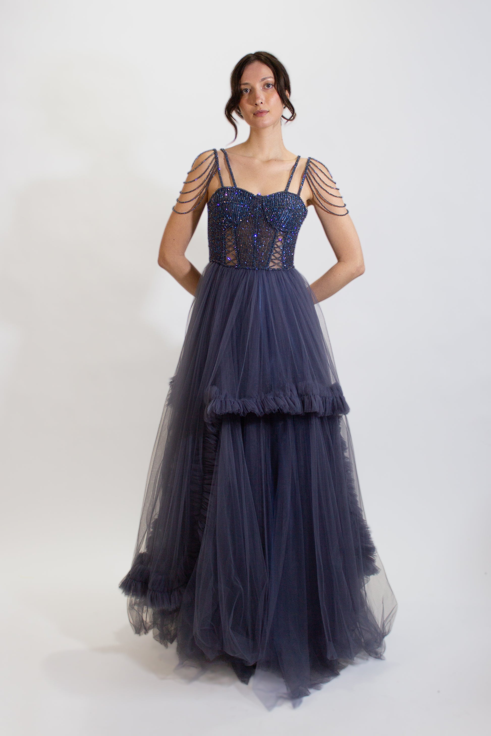 Présentation de notre superbe robe STELLA de la collection exclusive ONE OF A KIND. Cette robe de soirée est vraiment unique car nous ne proposons qu'une seule pièce, garantissant que votre look reste exclusif et jamais dupliqué. Démarquez-vous en toute confiance avec cette pièce d'exception qui garantit l'individualité.
