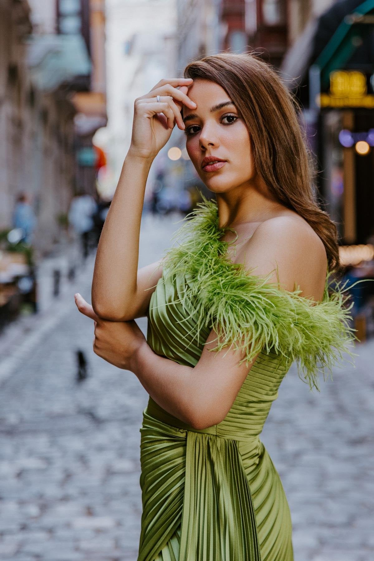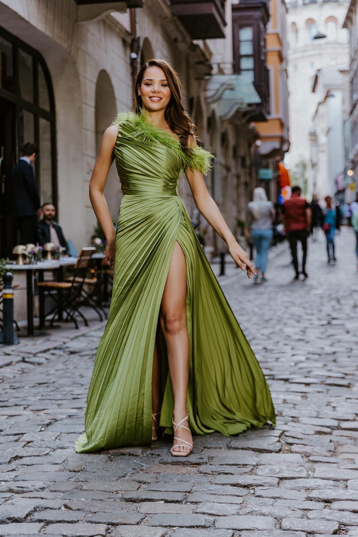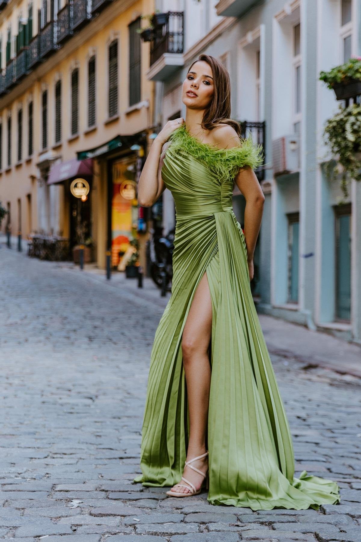 Introducing Brooklyn, our Green Evening Gown with Feather Detail