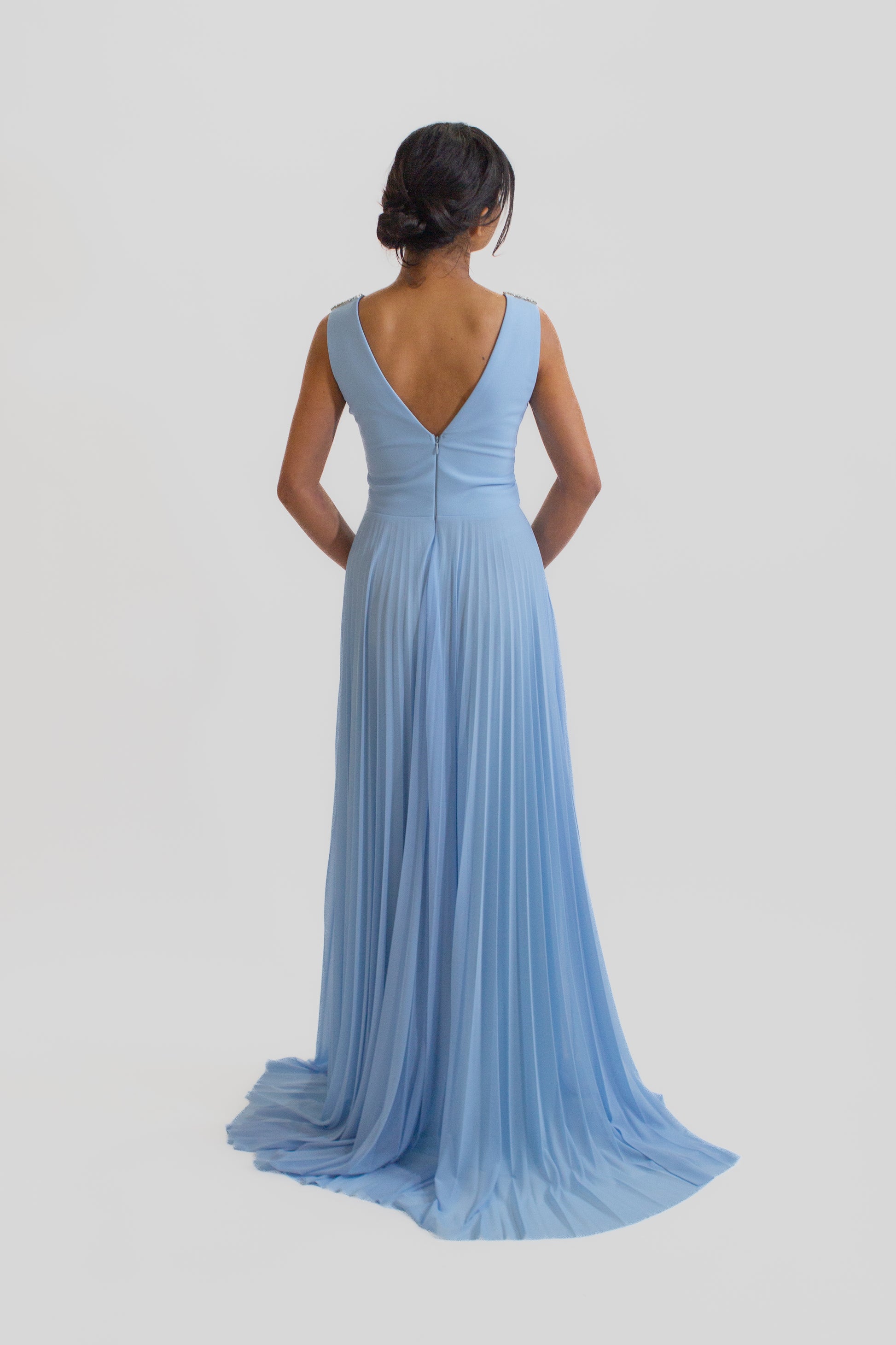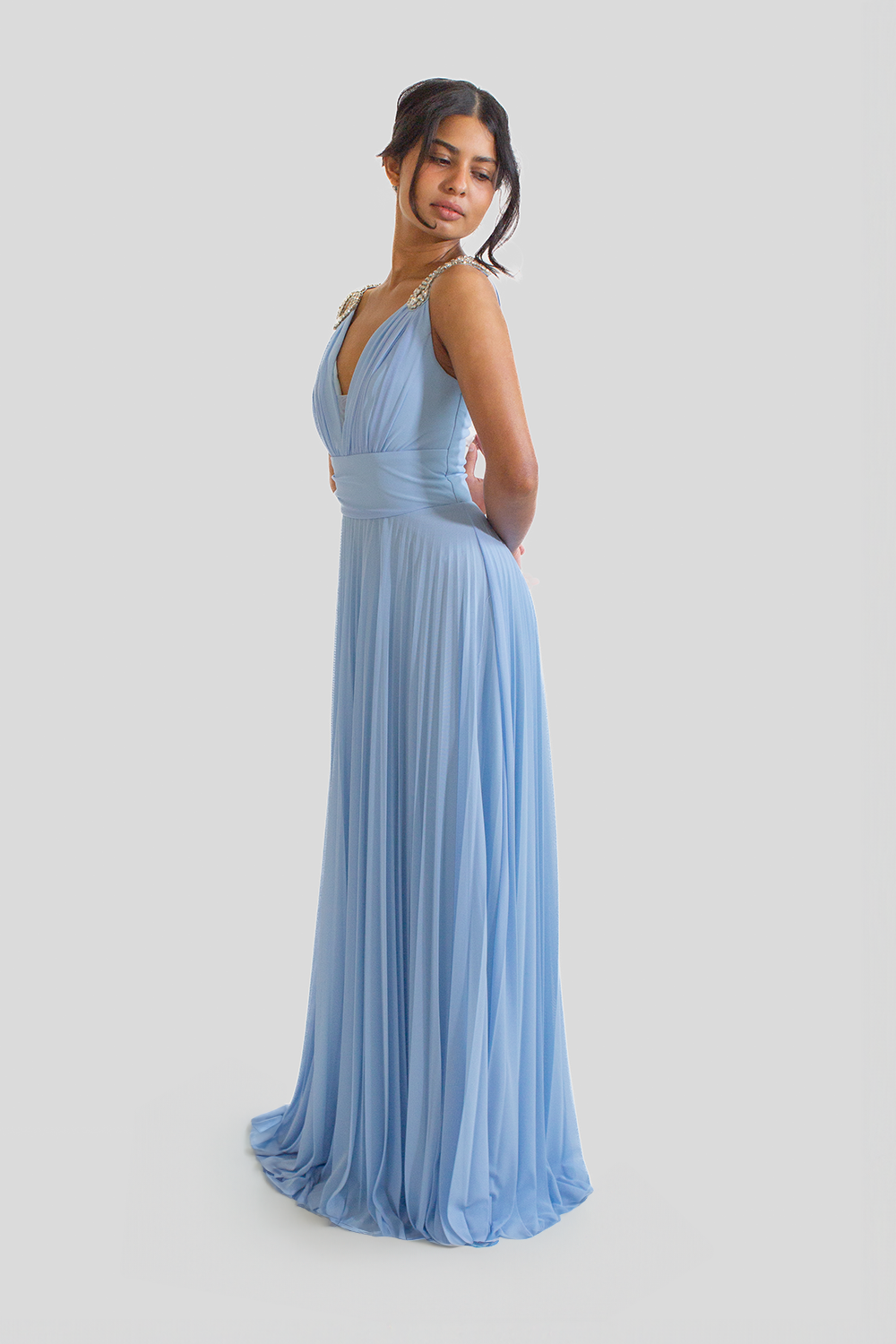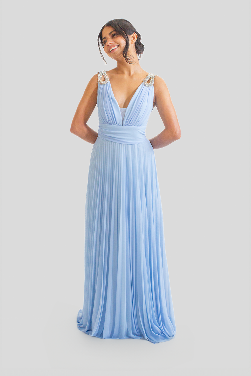 Step into the spotlight and radiate confidence in this captivating gown that is bound to capture attention. Let the beauty of the light blue hue and the grace of the floor-length design enhance your natural elegance and style, making you the belle of the ball.