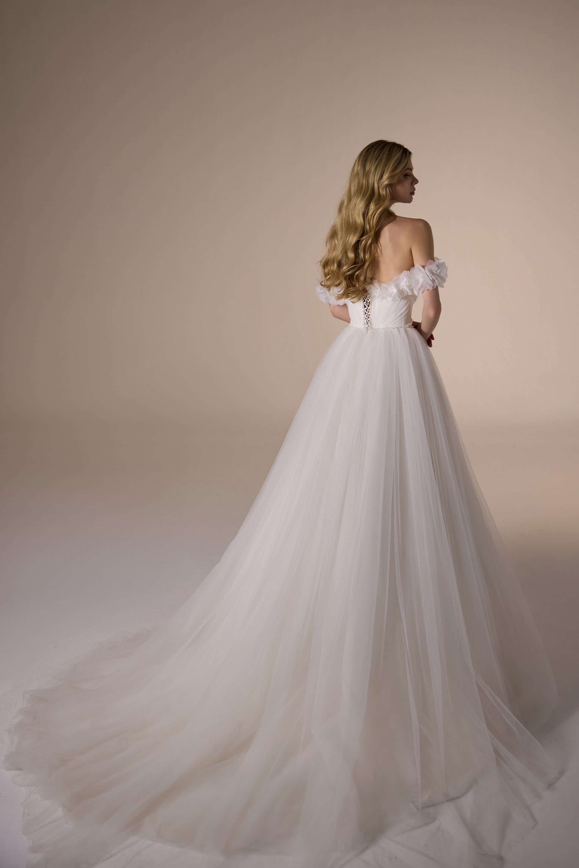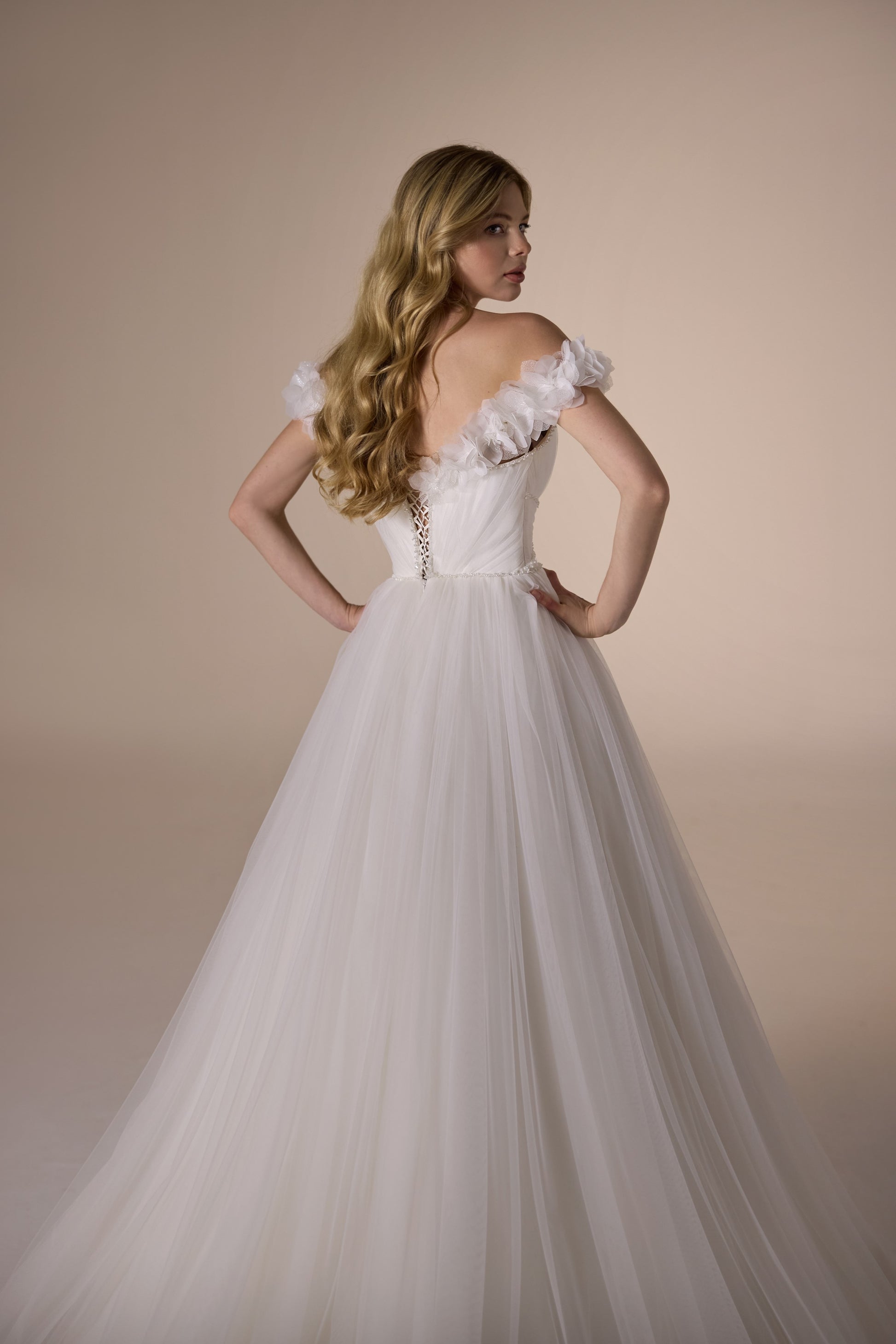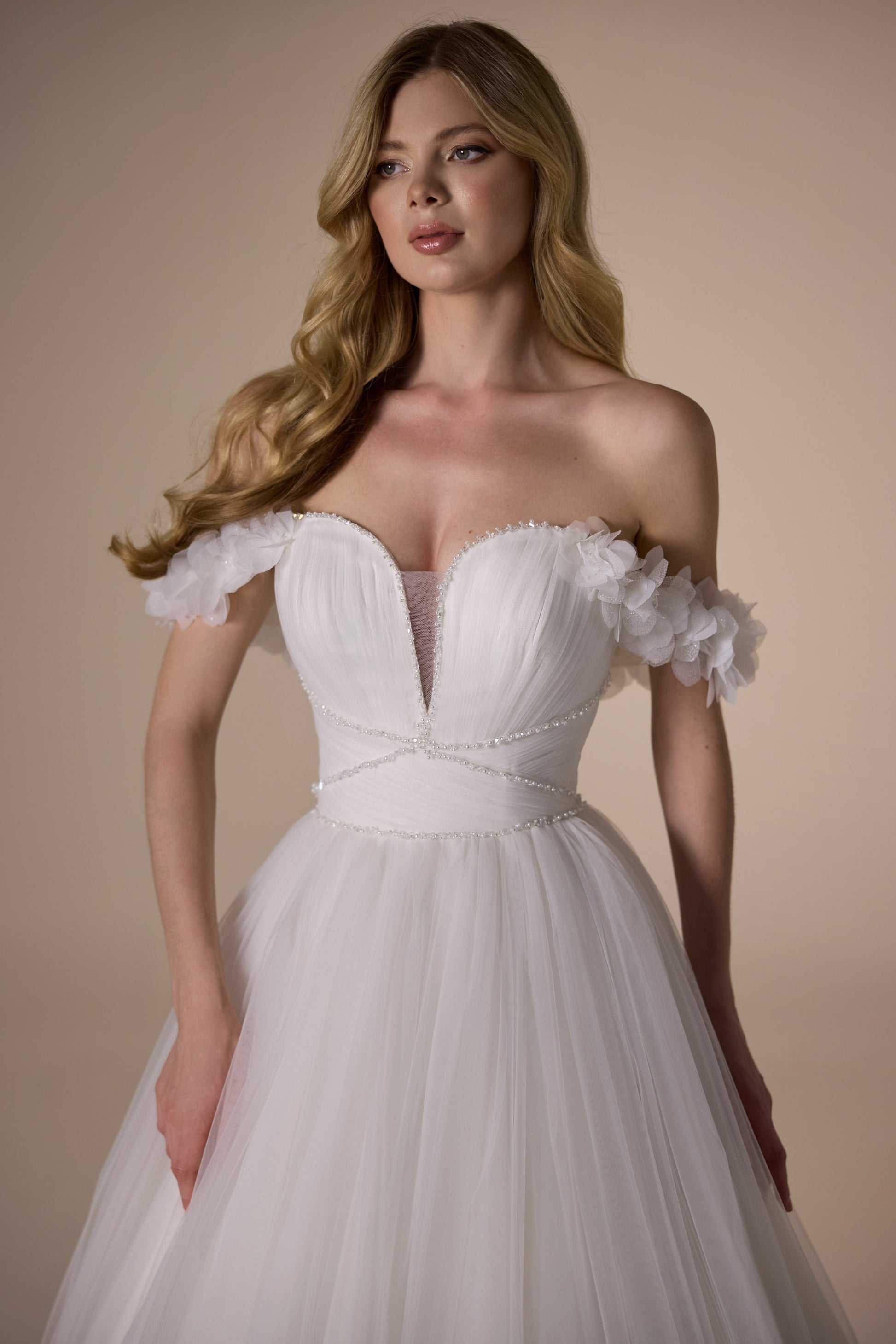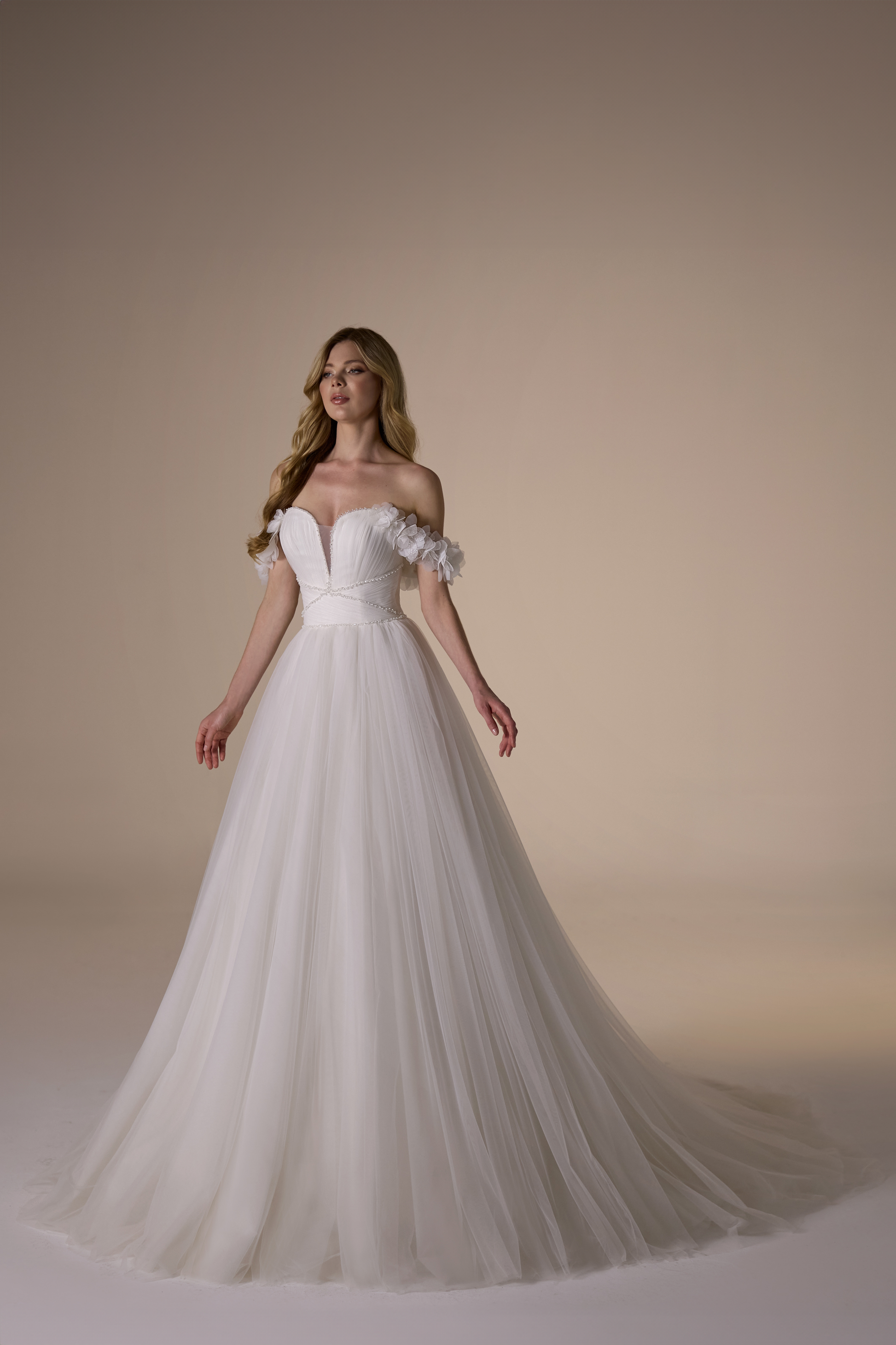 Create unforgettable memories in the Imogen Off-the-Shoulder Bridal Gown, a perfect choice for brides seeking timeless elegance on their special day.