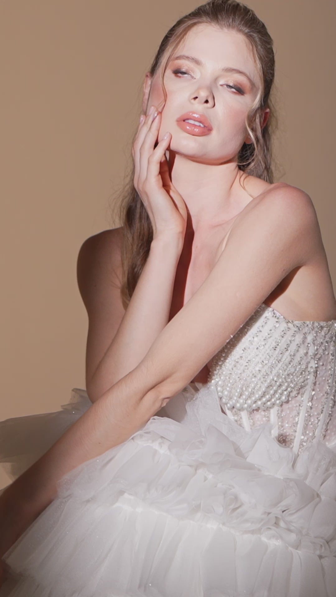 Experience the magic with our HALSEY bridal gown, meticulously crafted to your measurements within 6 weeks. This enchanting piece is a true masterpiece, blending traditional charm with modern sophistication to make your wedding day truly unforgettable.