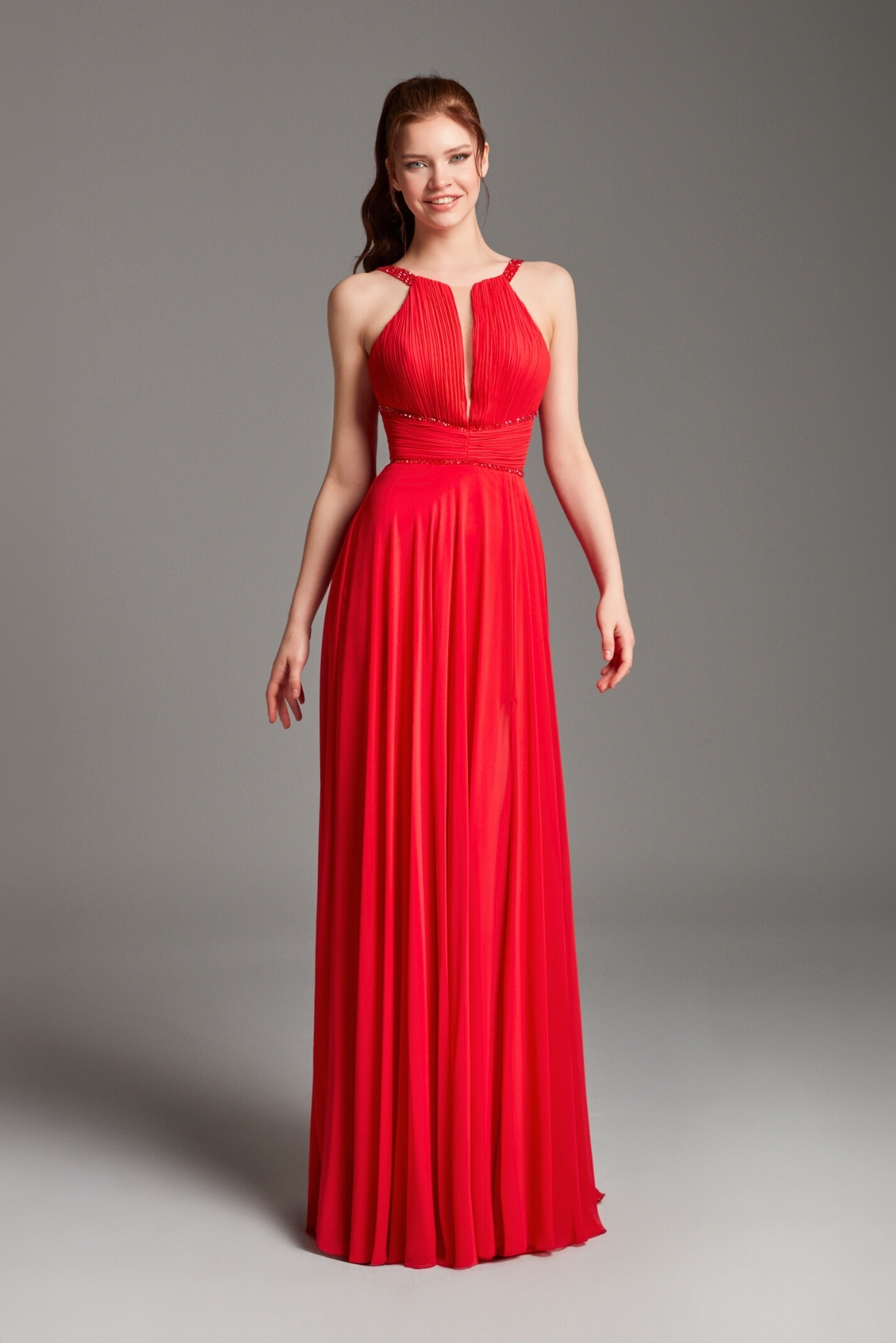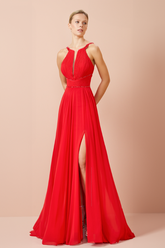 Elevate your evening in the elegant IZABEL gown, designed for sophisticated formal events. Crafted with a light flowy fabric that drapes beautifully, this dress features a flattering A-Line silhouette and a timeless halter neckline. The embellished straps add a touch of glamour, ensuring a graceful and stylish presence. Perfect for evening wear and special occasions, discover your perfect statement gown now.