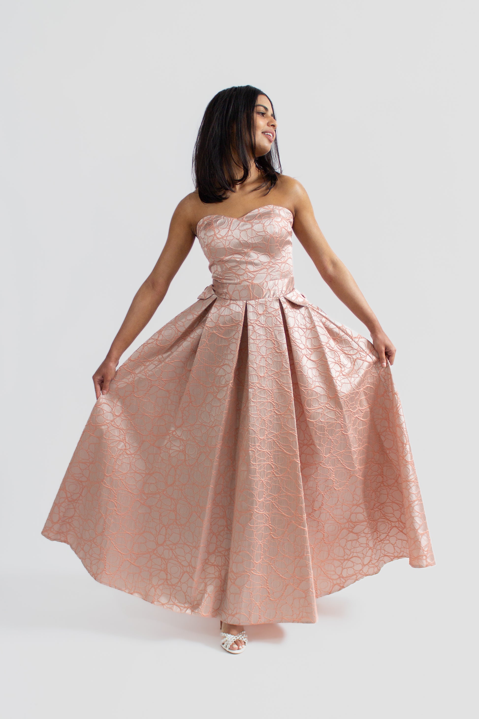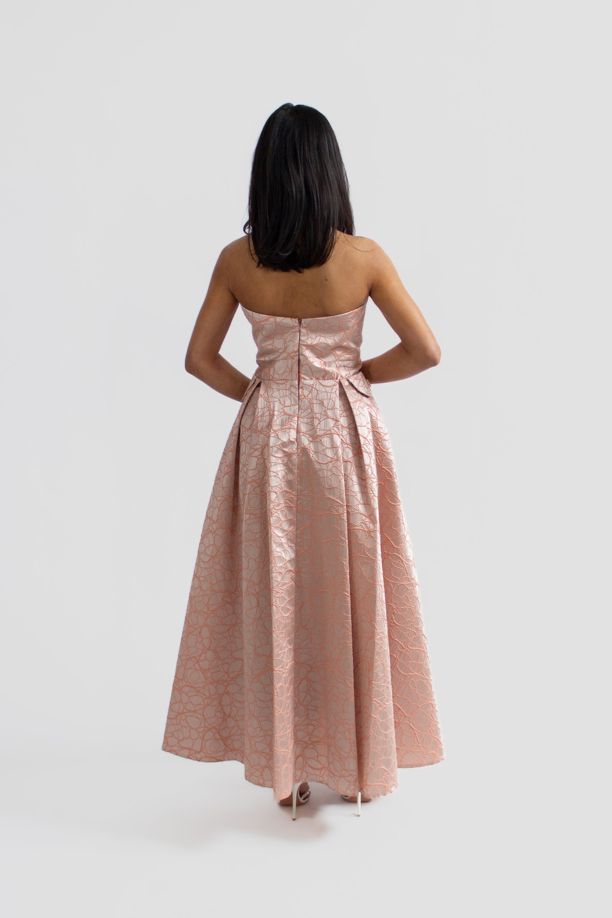 The A-line skirt creates a flattering silhouette, while the strapless design exudes elegance and style, making it a must-have for special events.