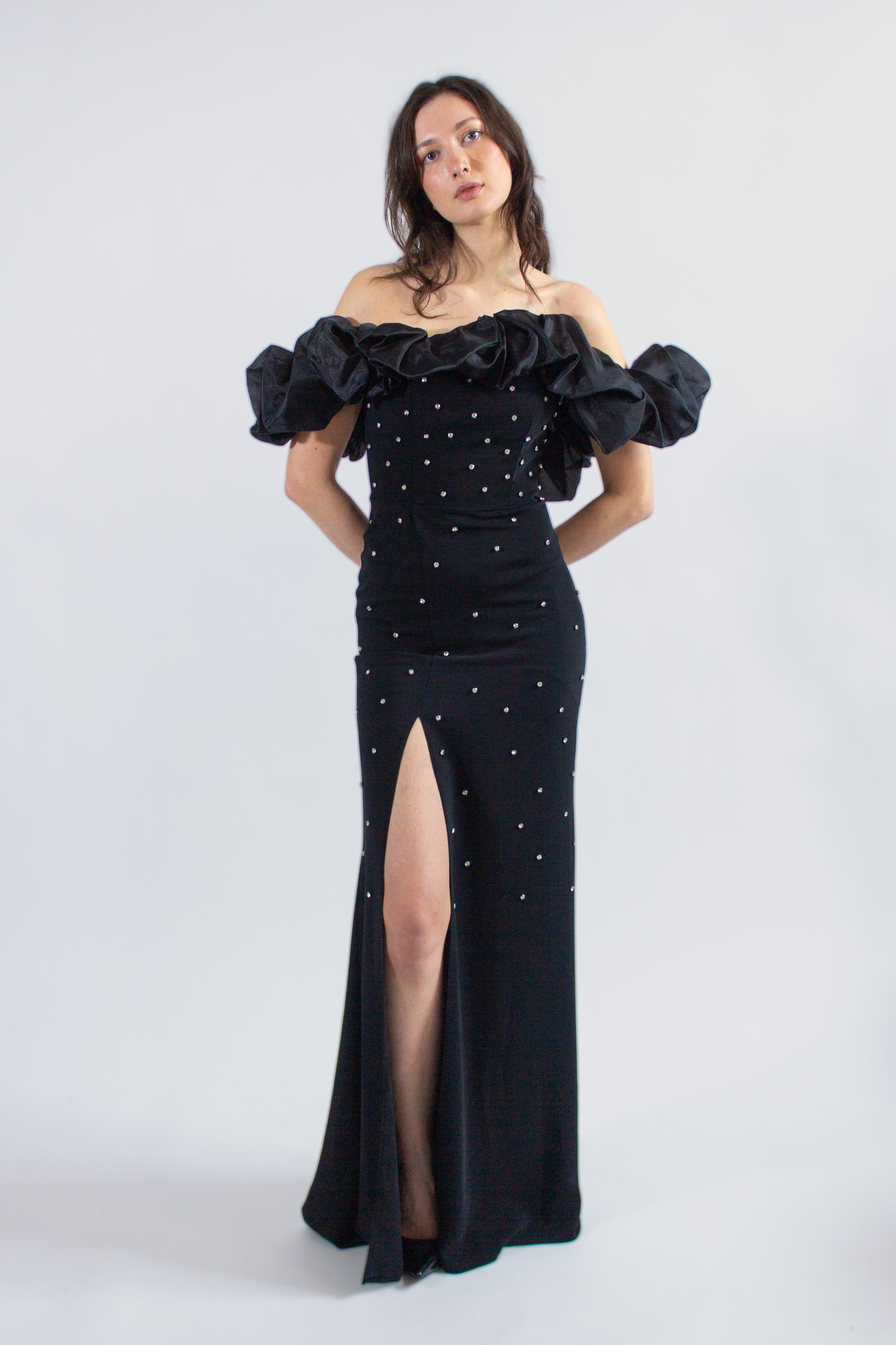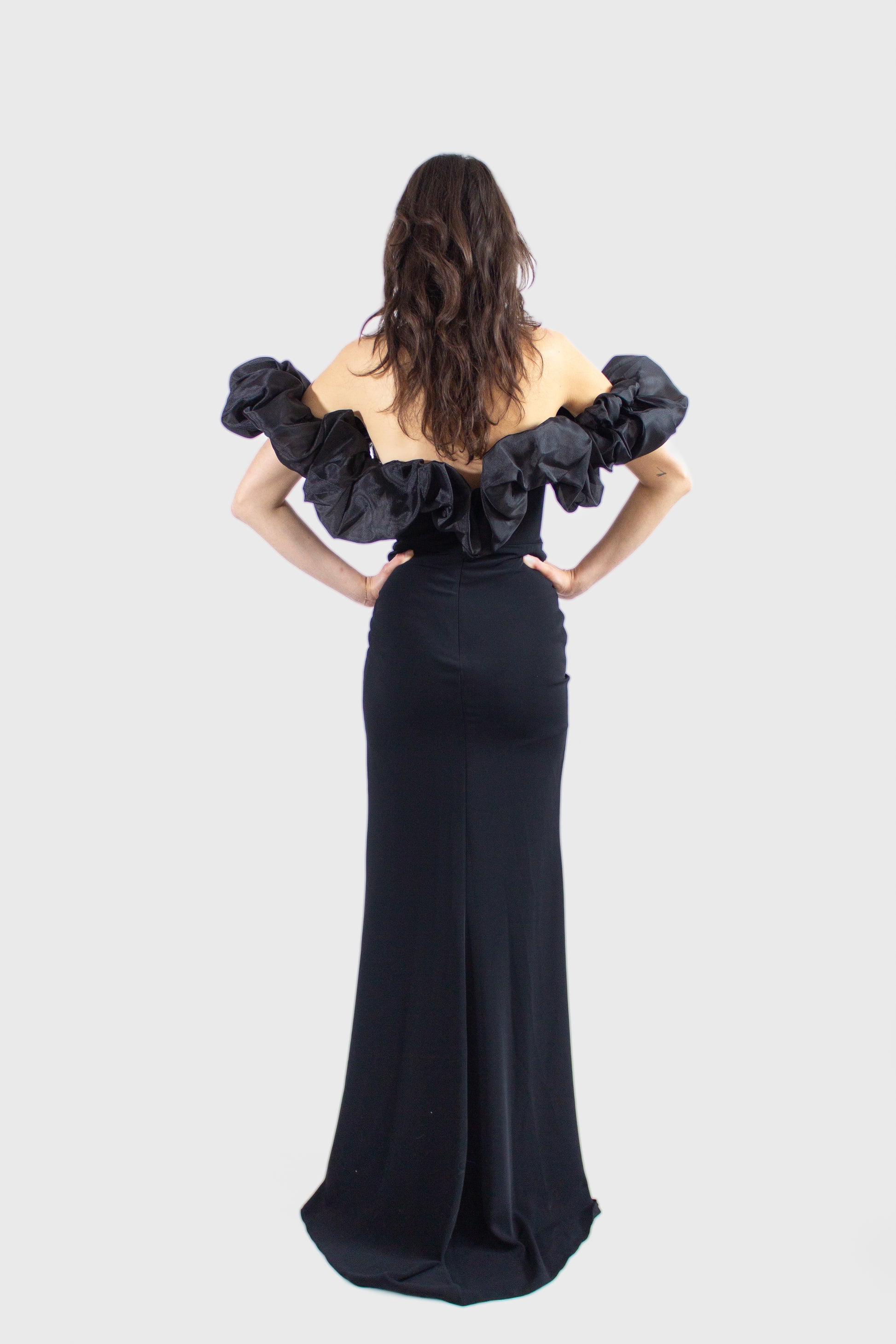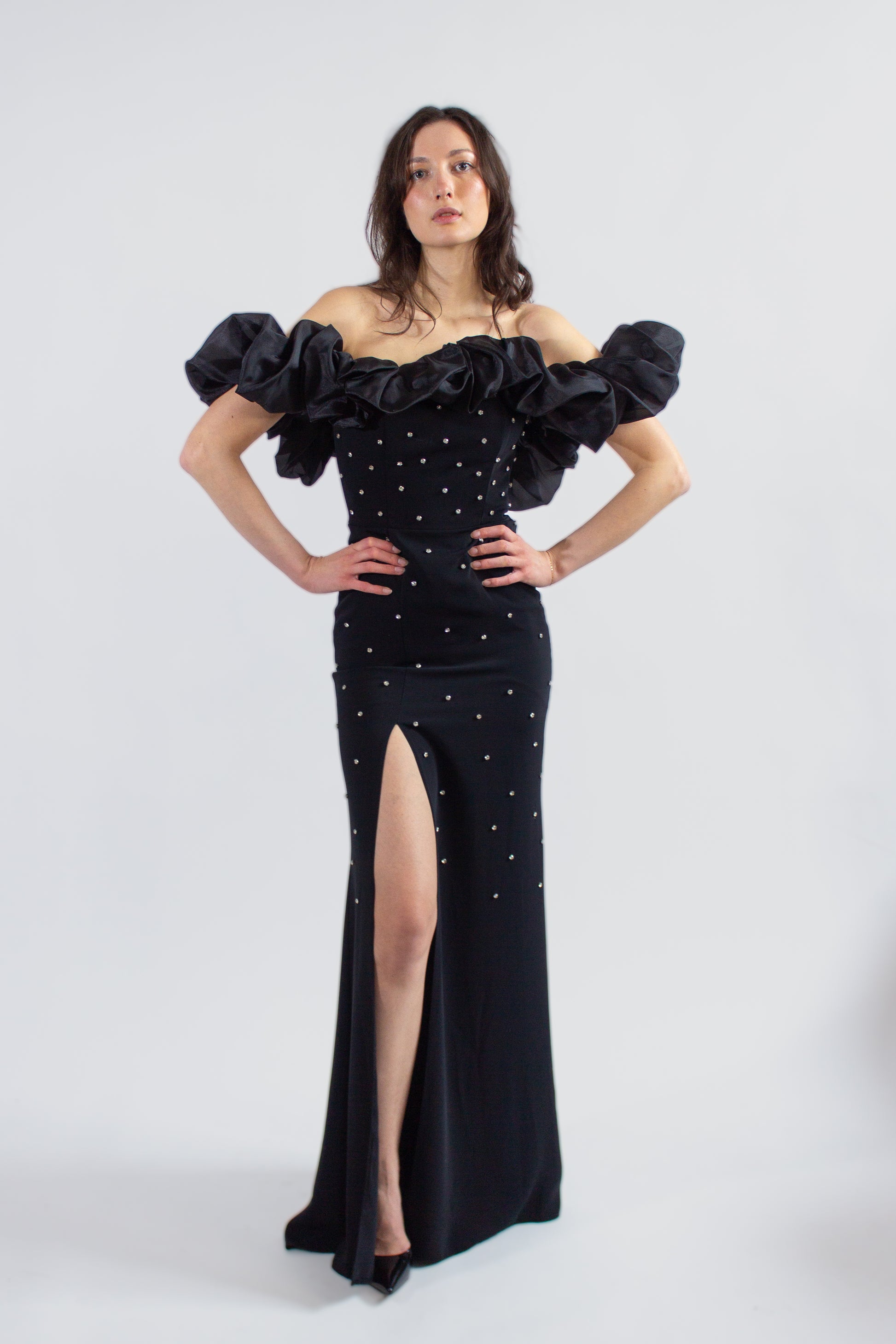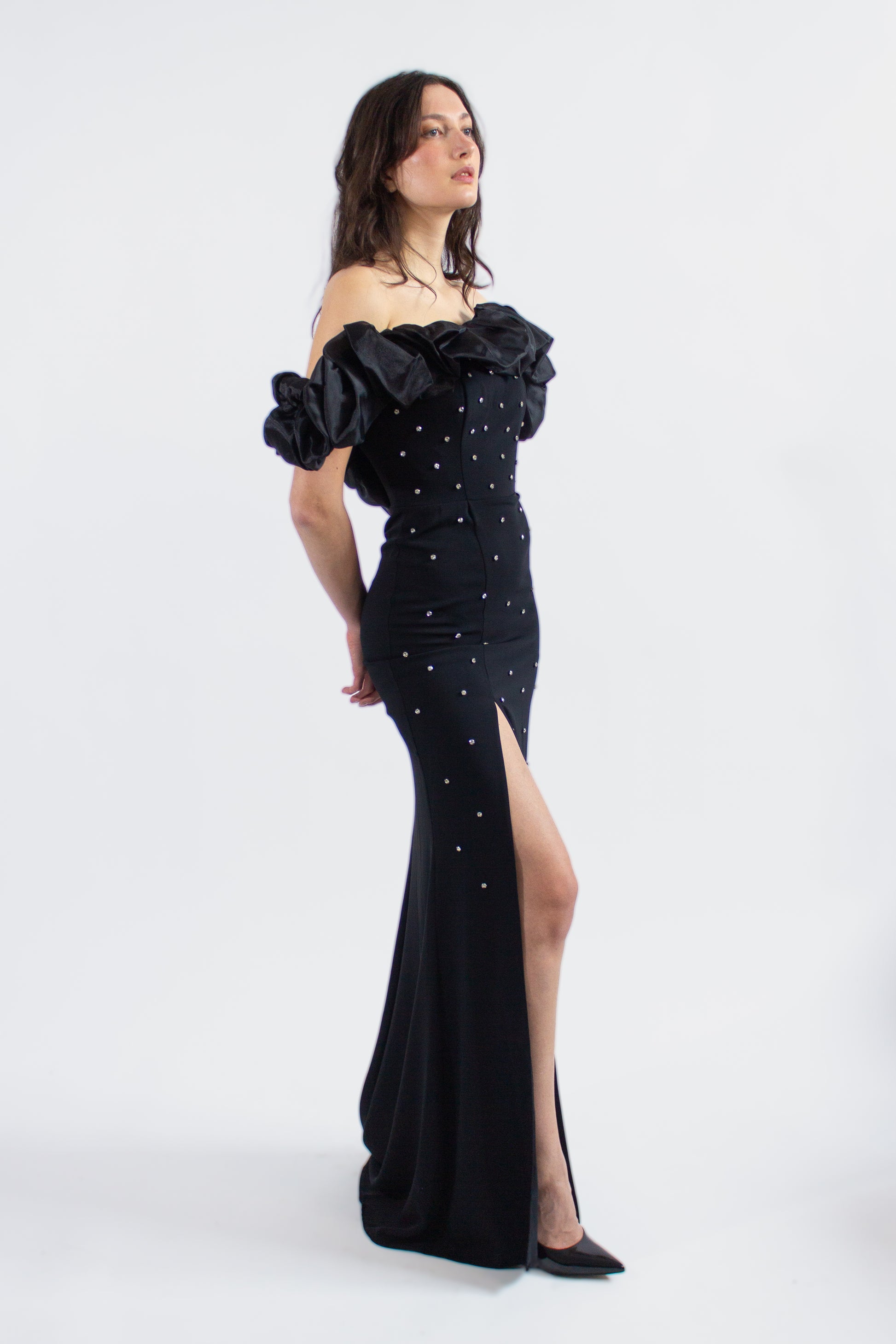 Elegance meets allure in our LEILA black gown, the epitome of sophistication. This stunning evening gown in black is designed to make a statement and captivate all eyes on you.
