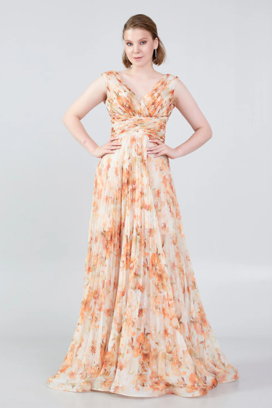 Step into the spotlight with our elegant summer dress. This dress is the epitome of sophistication and style, perfect for any special occasion. The sleeveless design and V-neck add a touch of glamour, while the intricate floral pattern exudes femininity and grace. Whether you're attending a formal event or a night out on the town, this dress will make you feel confident and beautiful.