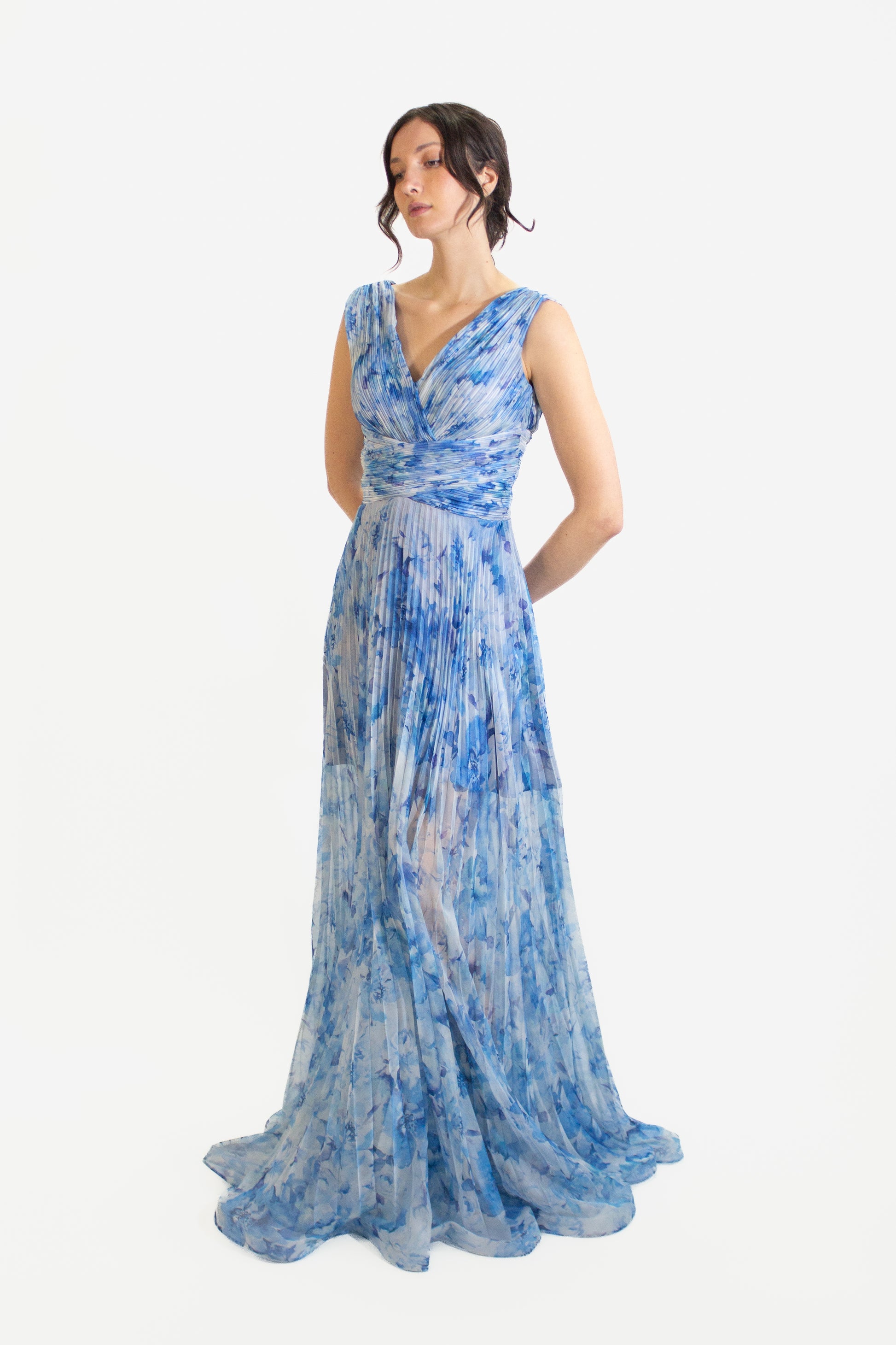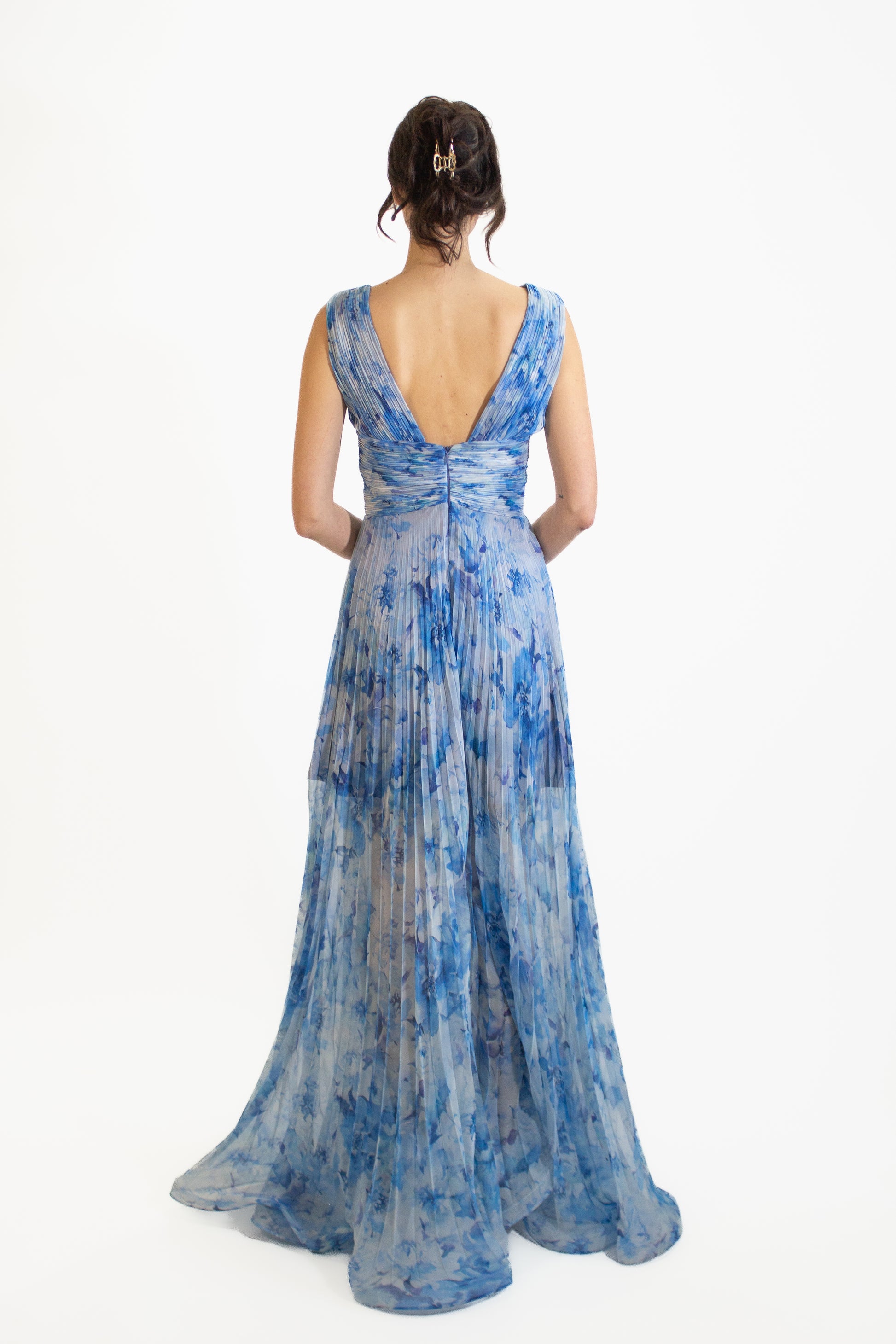 Don't miss out on this exquisite piece that will turn heads wherever you go. Elevate your wardrobe with our elegant blue floral evening dress today!