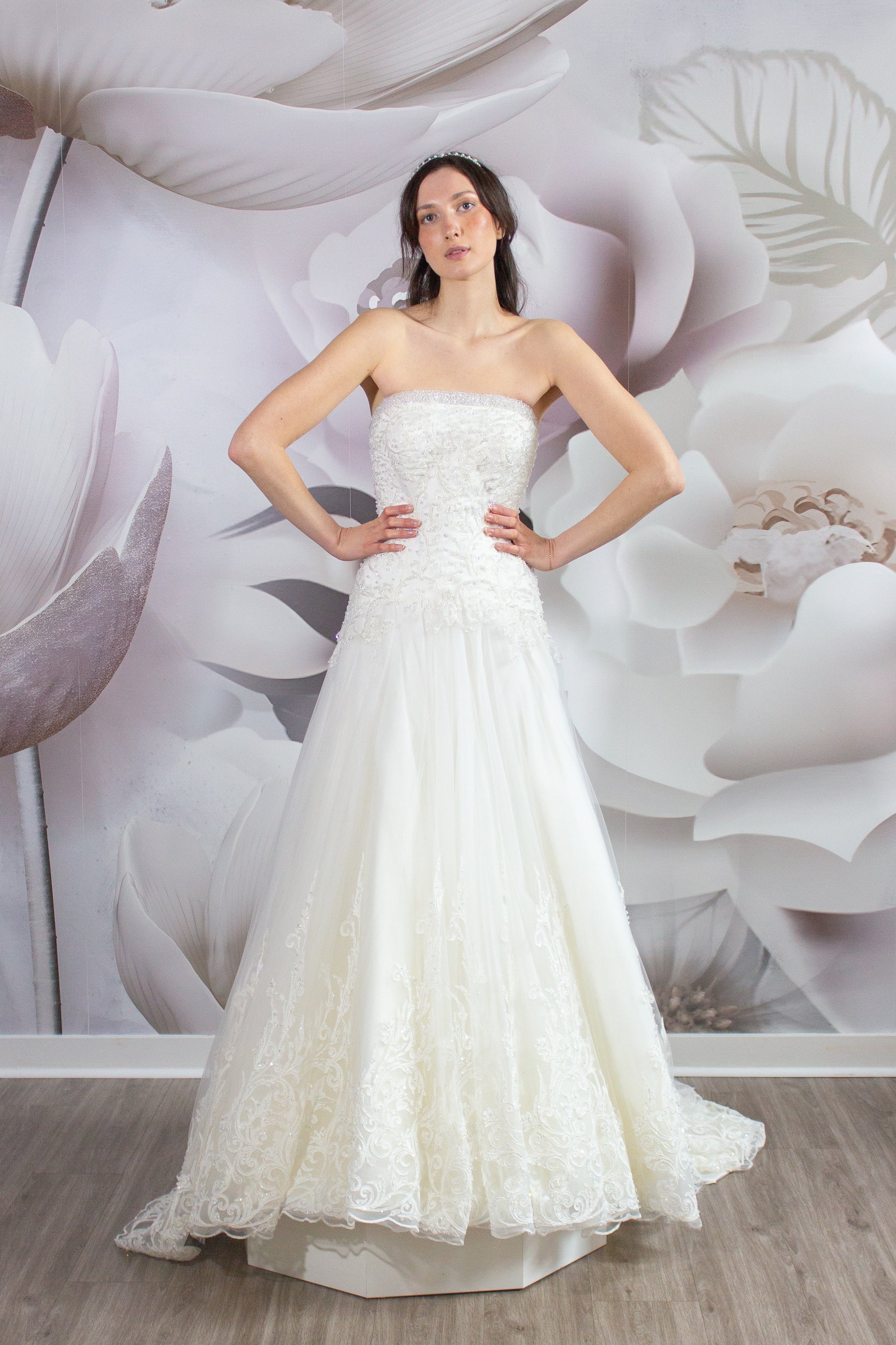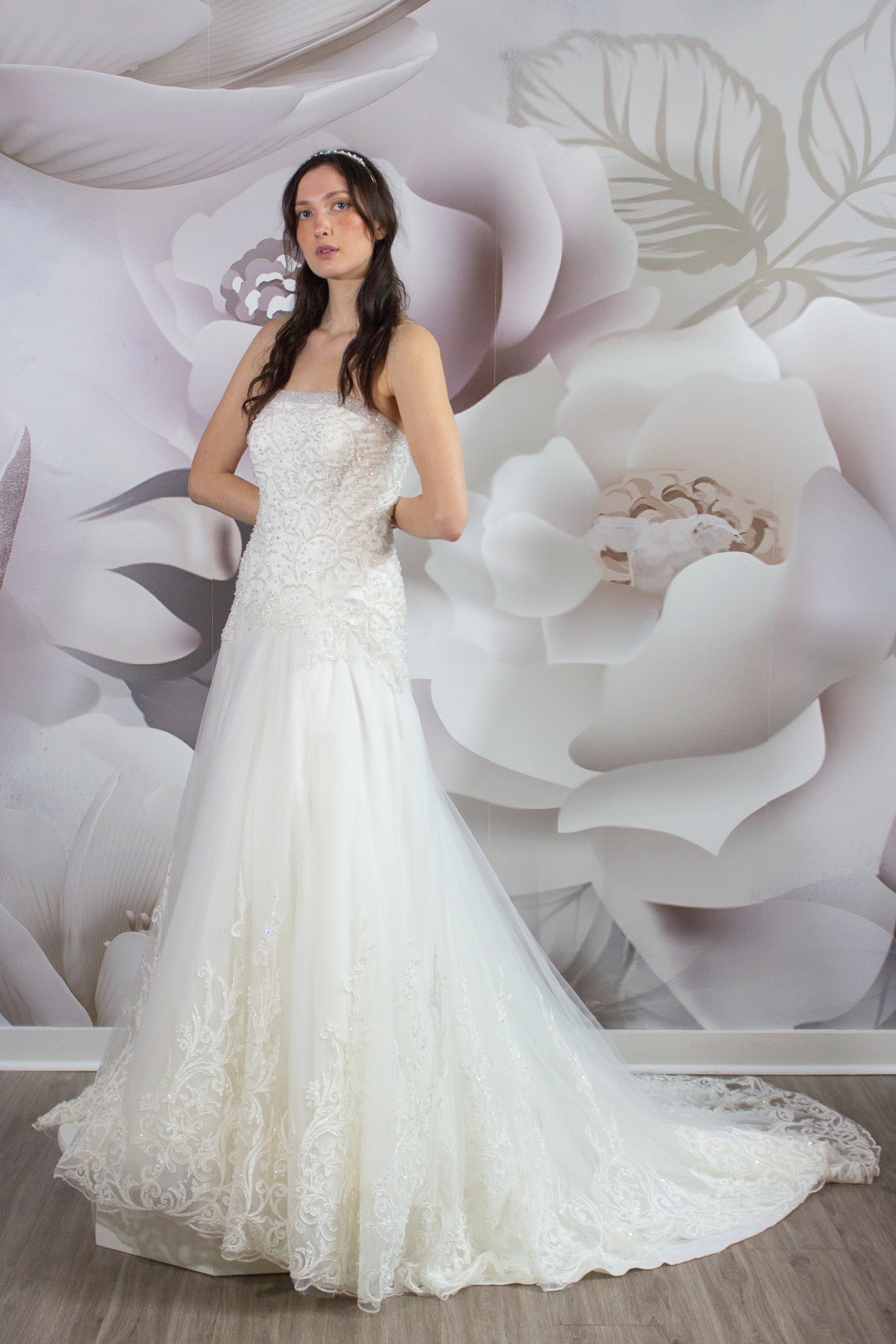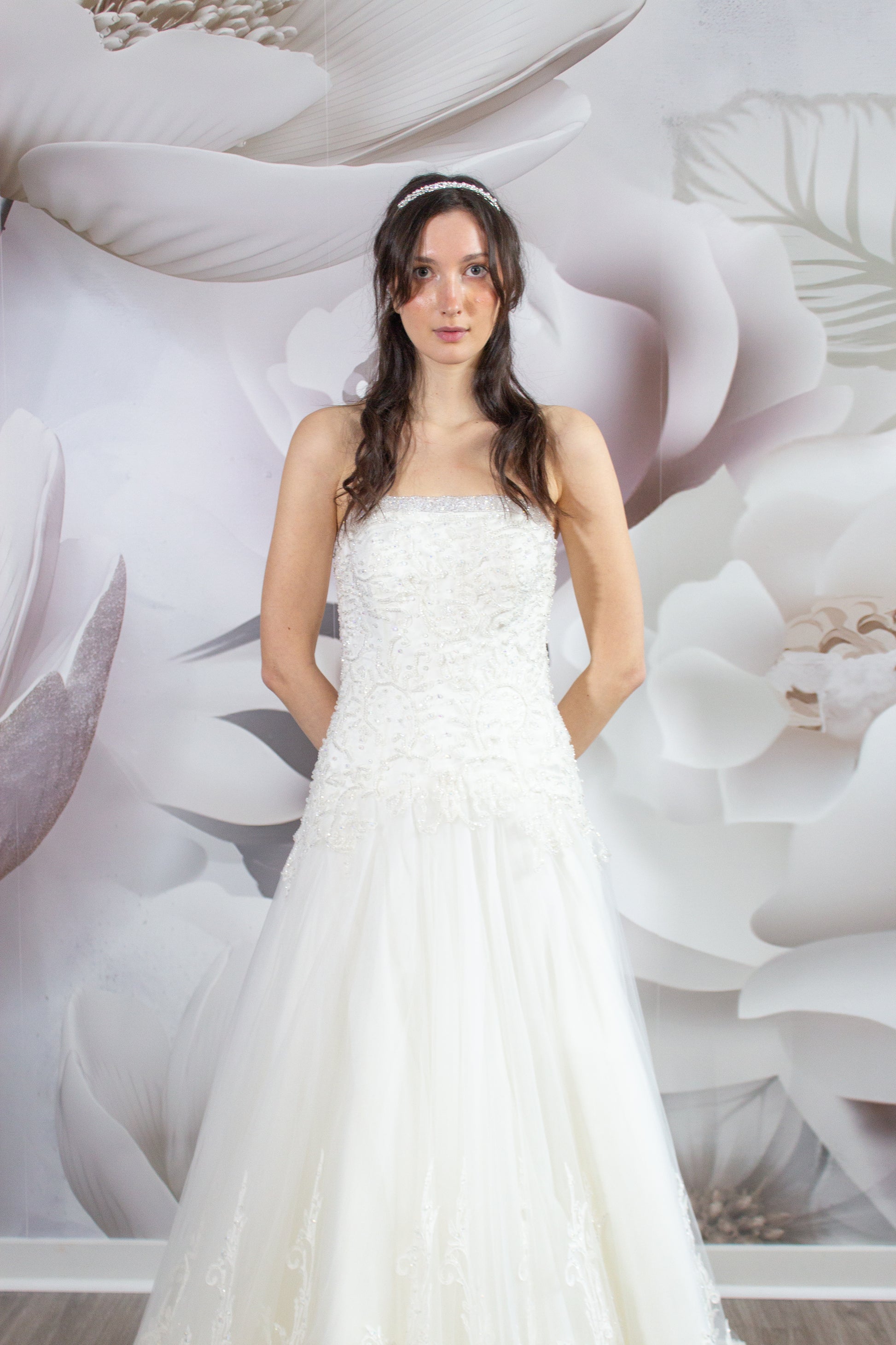 Step into a world of elegance with the JUNE Bridal Gown, a masterpiece from our exclusive NICOLE MILANO collection. This enchanting gown features a strapless design and a mesmerizing long train, creating a vision of timeless beauty and sophistication. The JUNE gown is a symbol of grace and style, tailored to make your special day truly unforgettable.