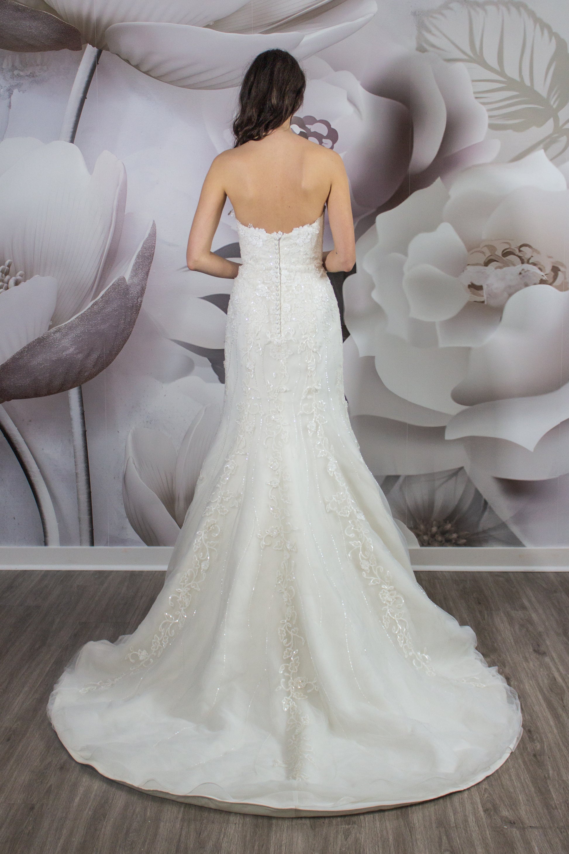Bridal gowns from the NICOLE MILANO collection are only available in one size and cannot be ordered in additional sizes.