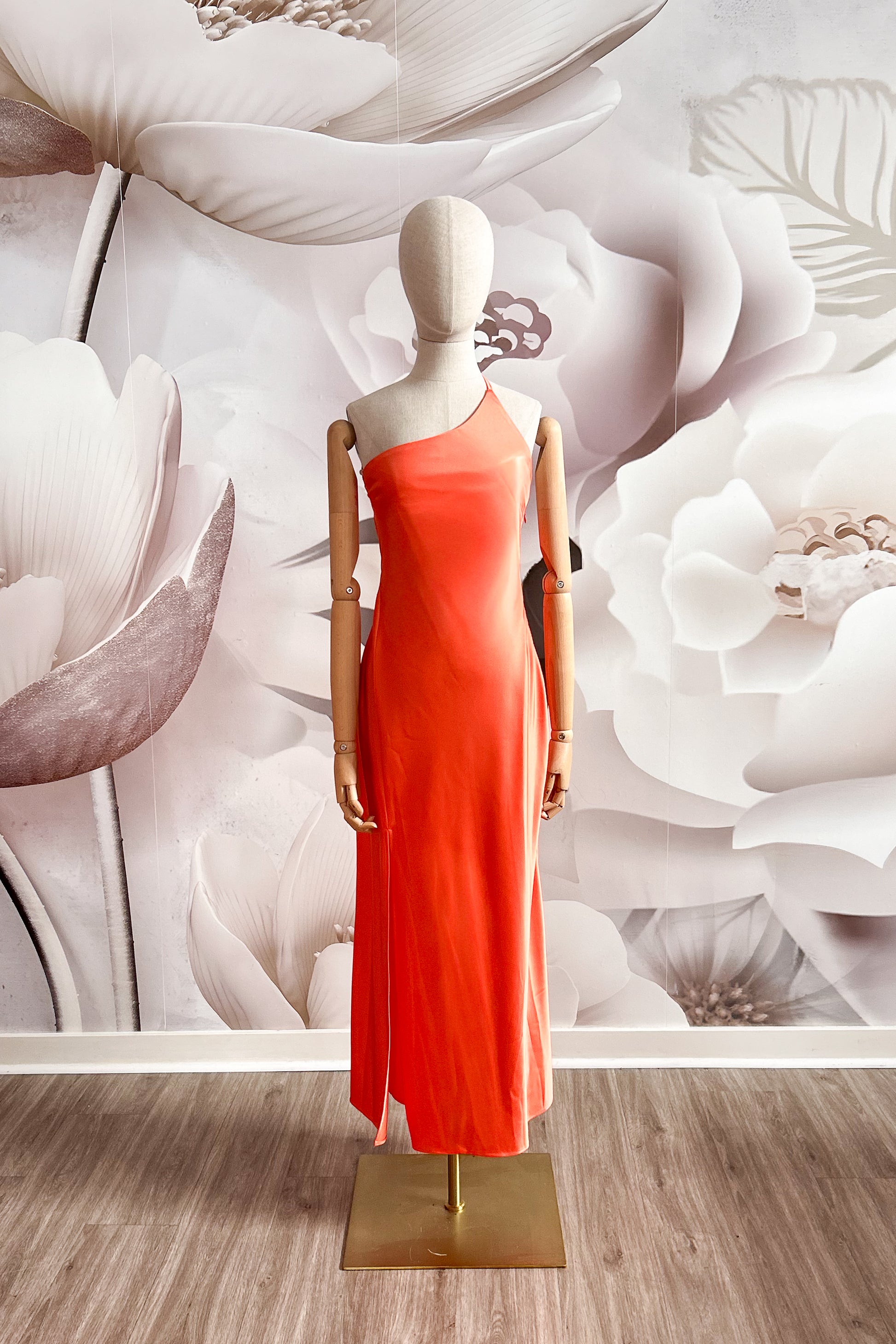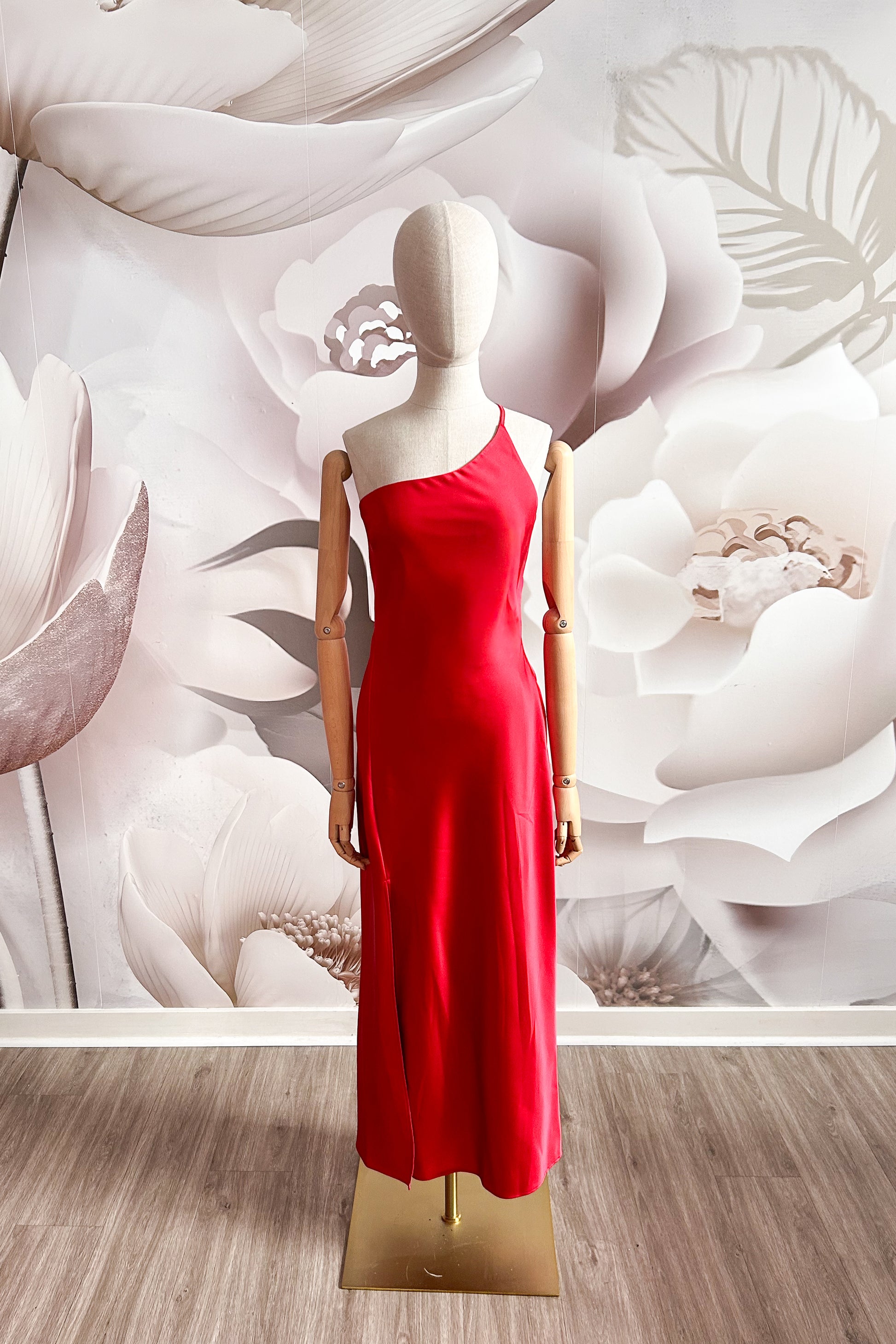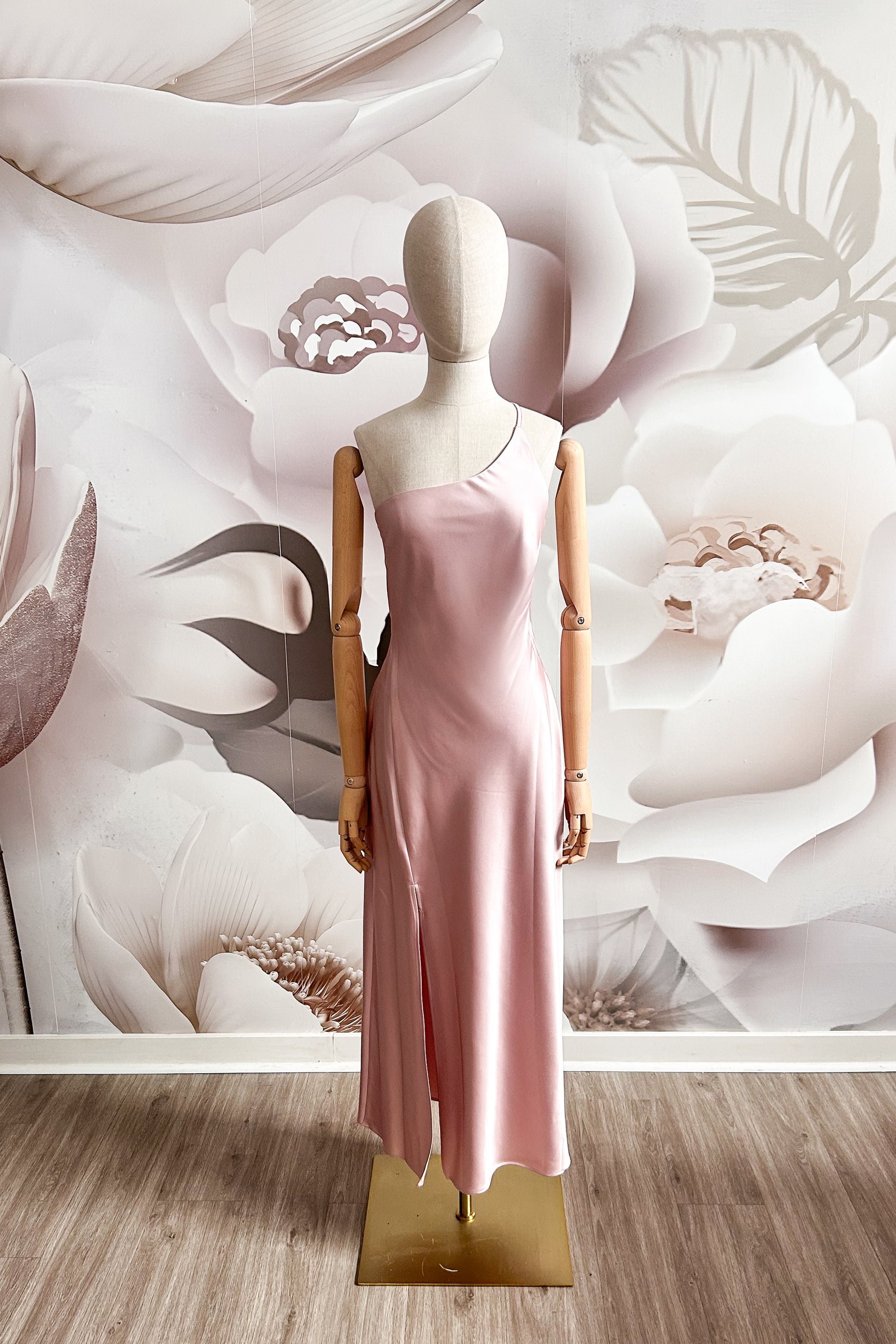 This elegant one-shoulder satin midi dress offers a sleek and modern silhouette with timeless appeal. Designed to softly contour the body, the dress features an asymmetrical one-shoulder neckline that adds a sophisticated and fashion-forward touch.