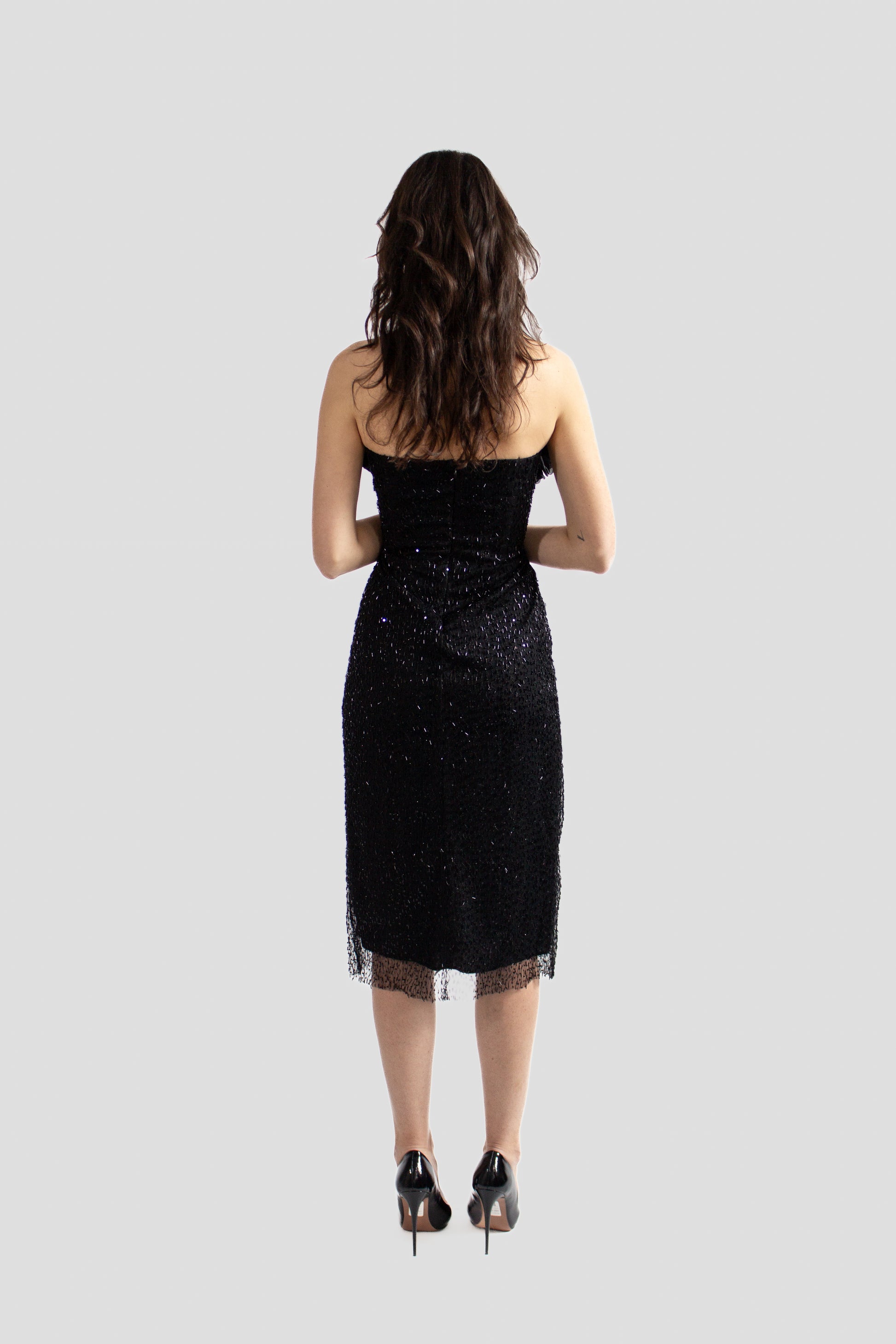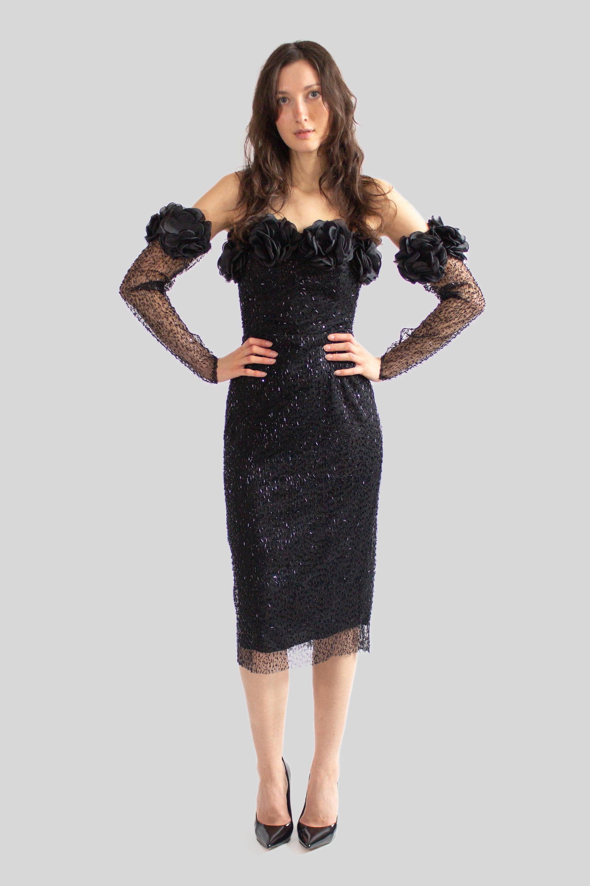 Embrace timeless beauty in the SARAH gown, a strapless masterpiece designed to turn heads. The detachable sleeves offer unmatched versatility, transforming this dress from a sleek cocktail silhouette to a formal stunner in an instant.