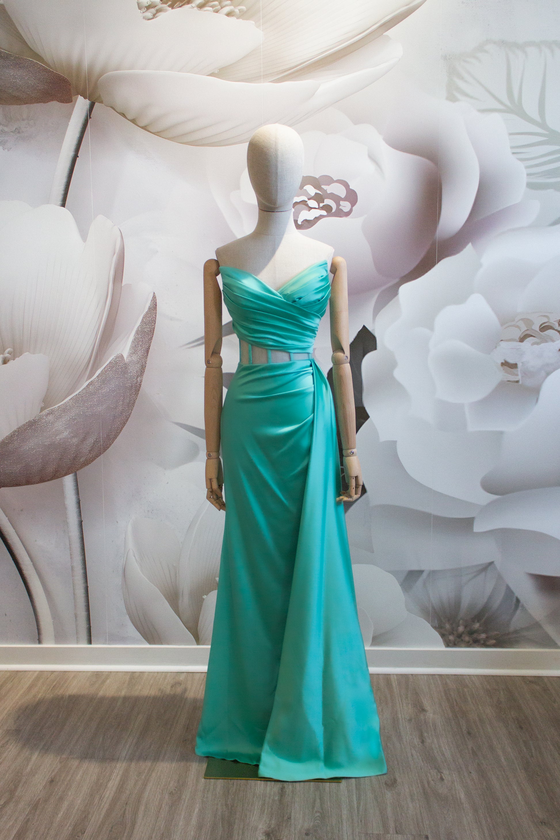 Dazzle and delight in our exquisite full-length evening gown, featuring a beautiful combination of colors.
