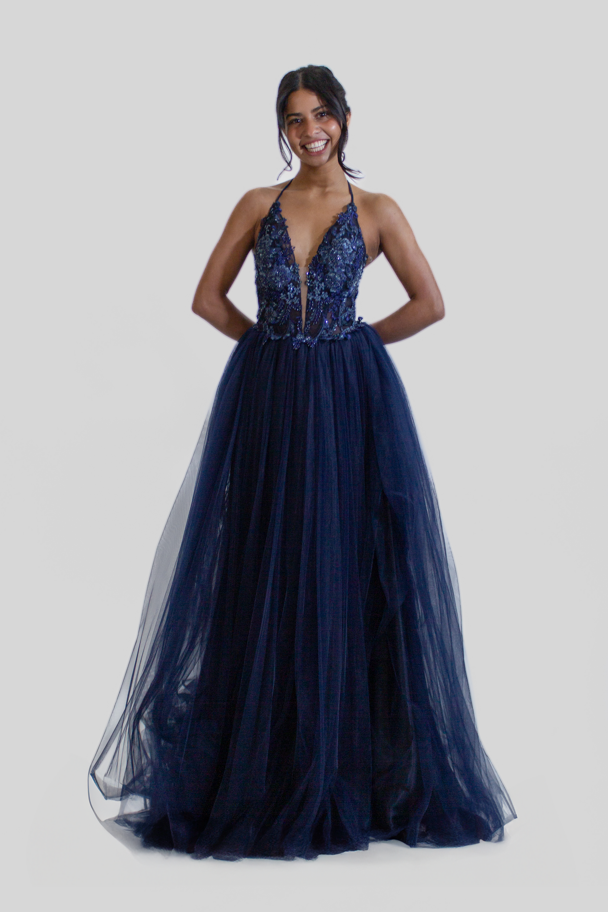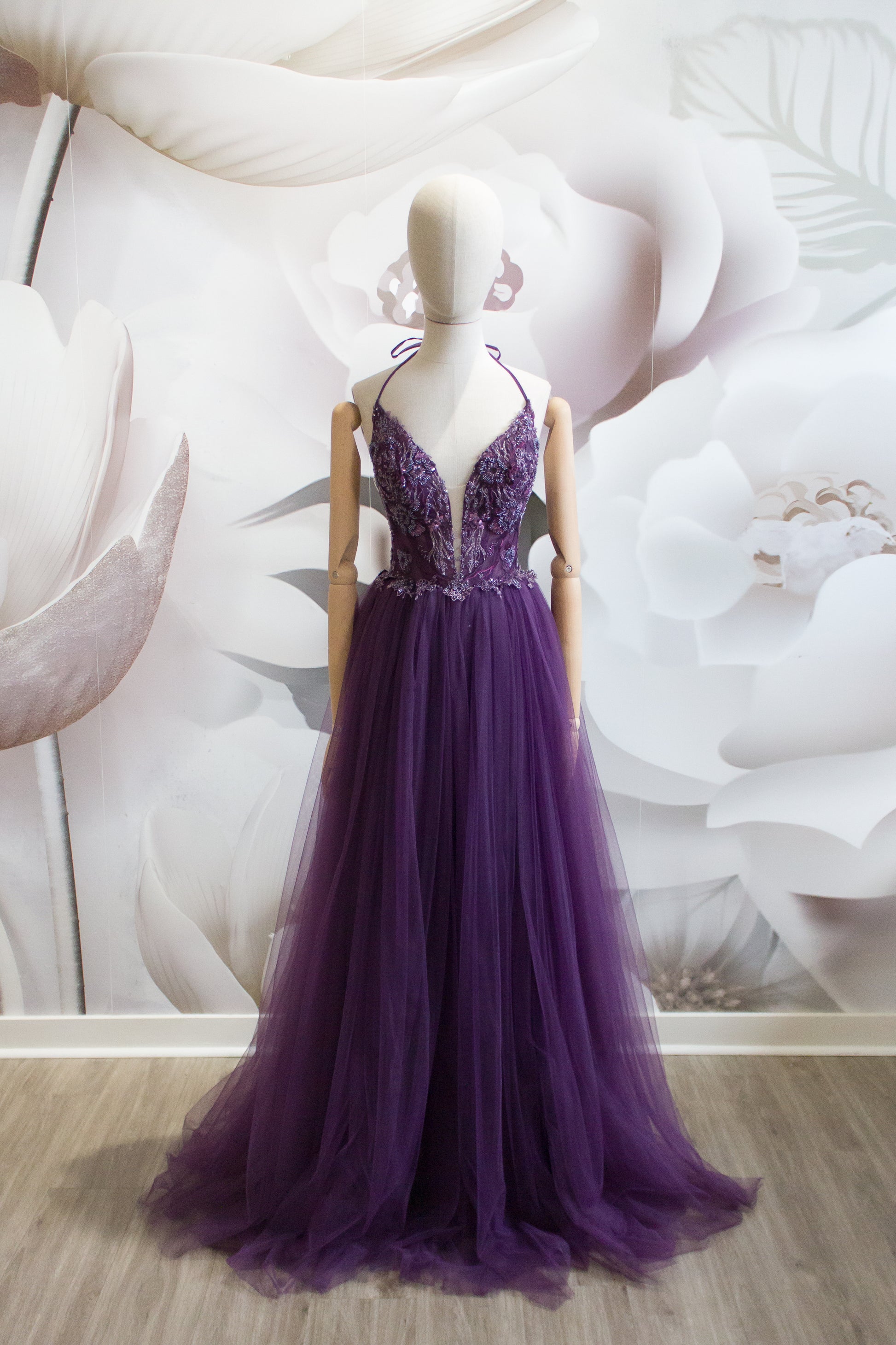 Make a statement in our exquisite halter VIENNA evening gown, available in stunning purple and navy colors. This dress is a true showstopper, perfect for those glamorous evenings where you want to shine.